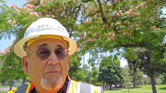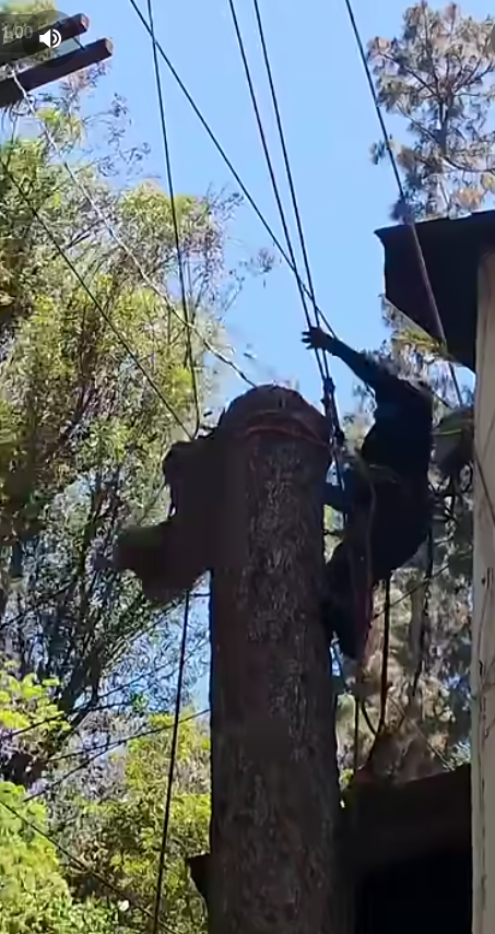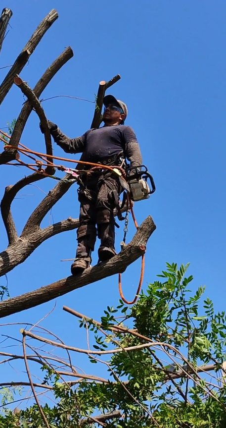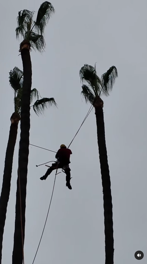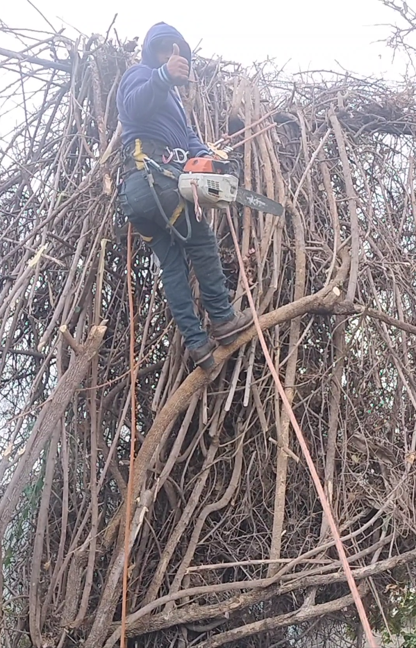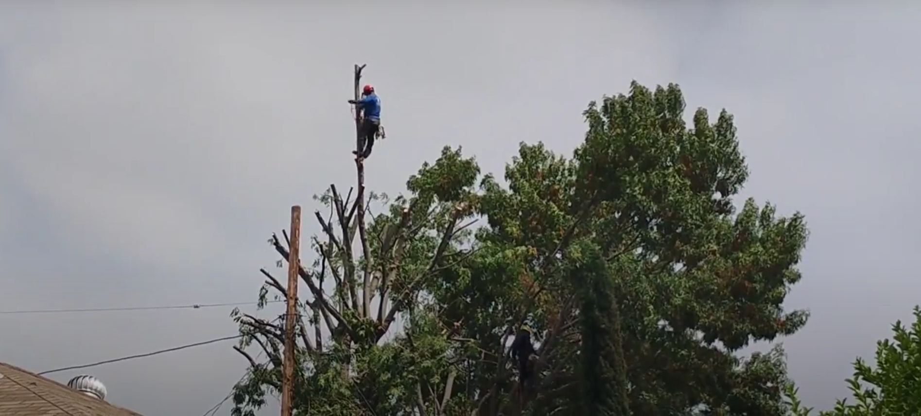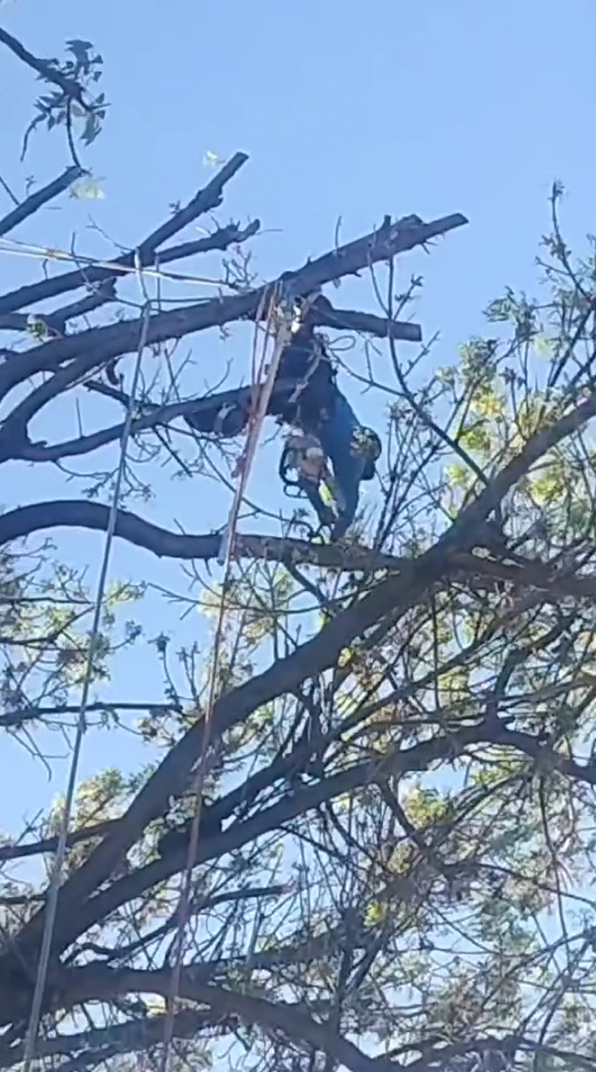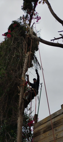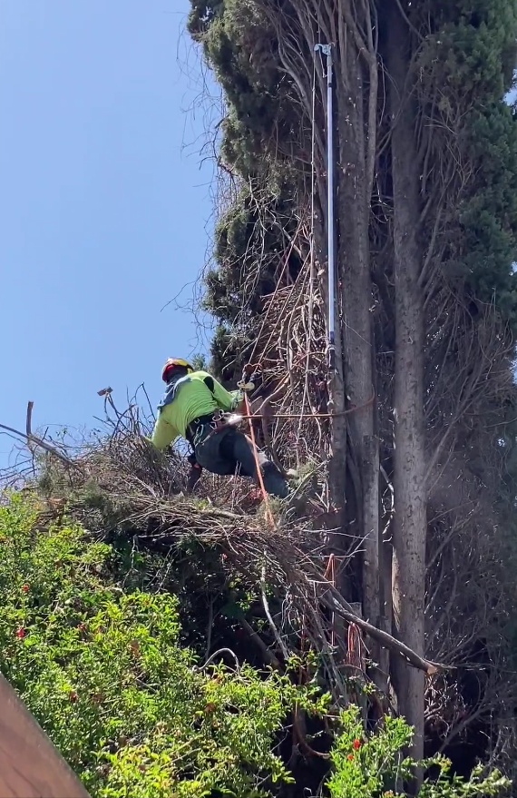 Roping and removing dead limbs from an Italian Cypress Tree.