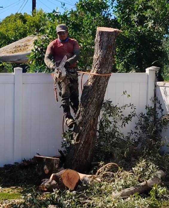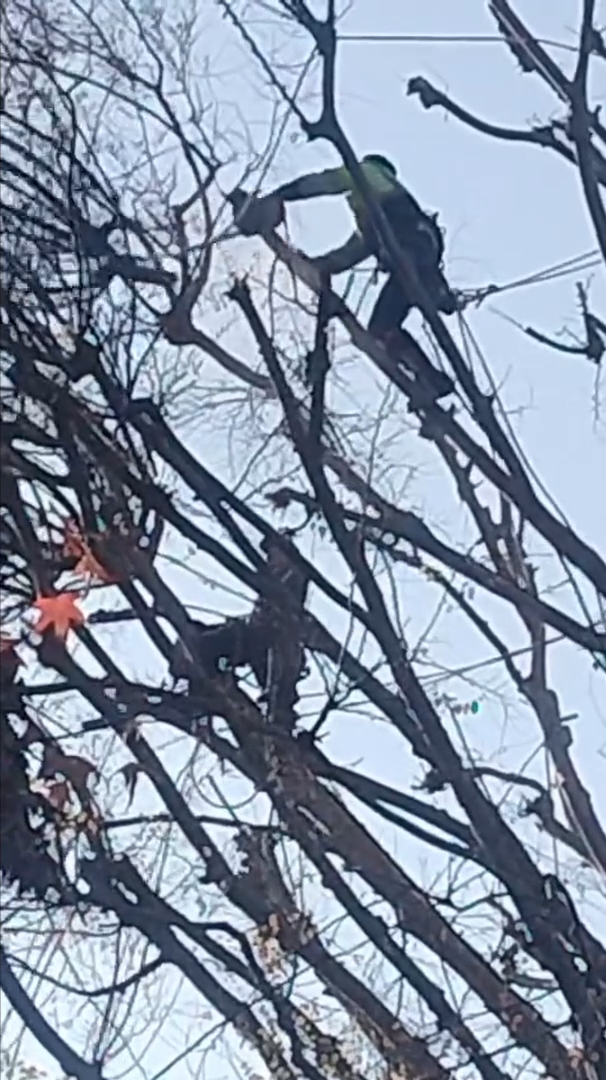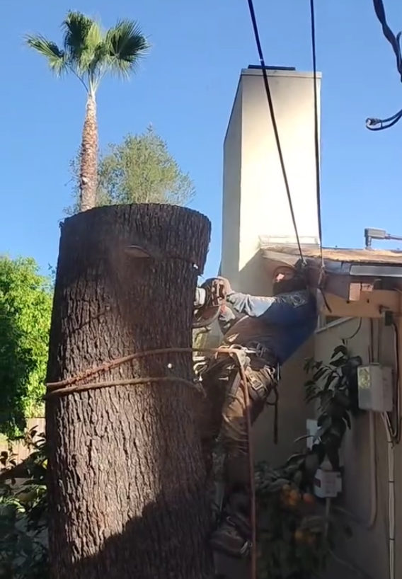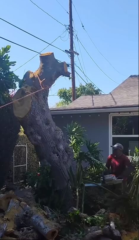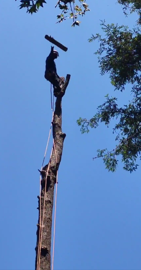 An efficient and safe way of removing trees using ropes while guiding branches.