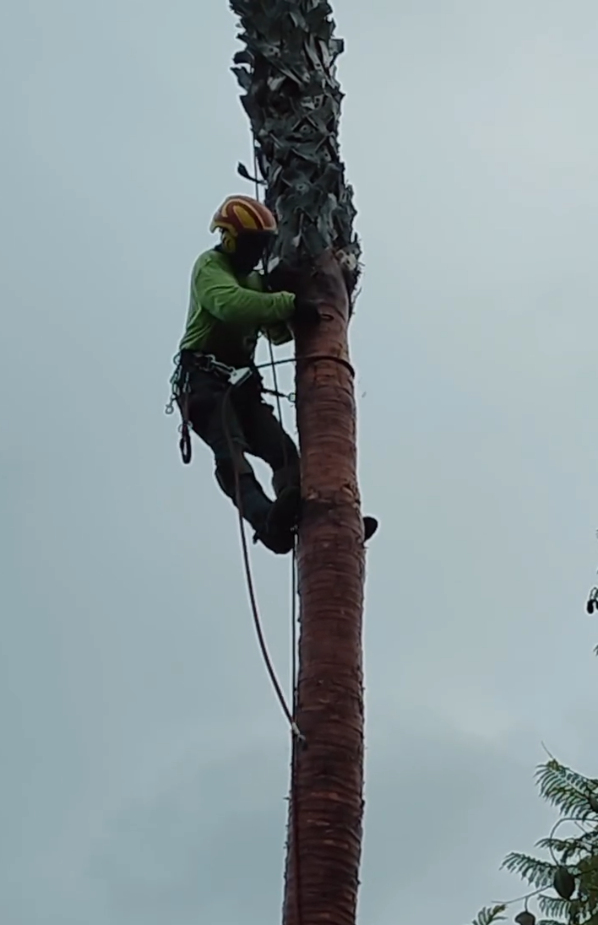 Each frond and seed pod is cut near the base and raised up to a tight crown appeal.