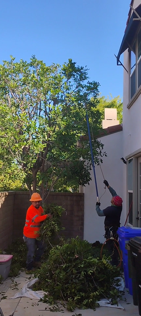 Trimming and cleaning dead from an Italian Cypress Tree.